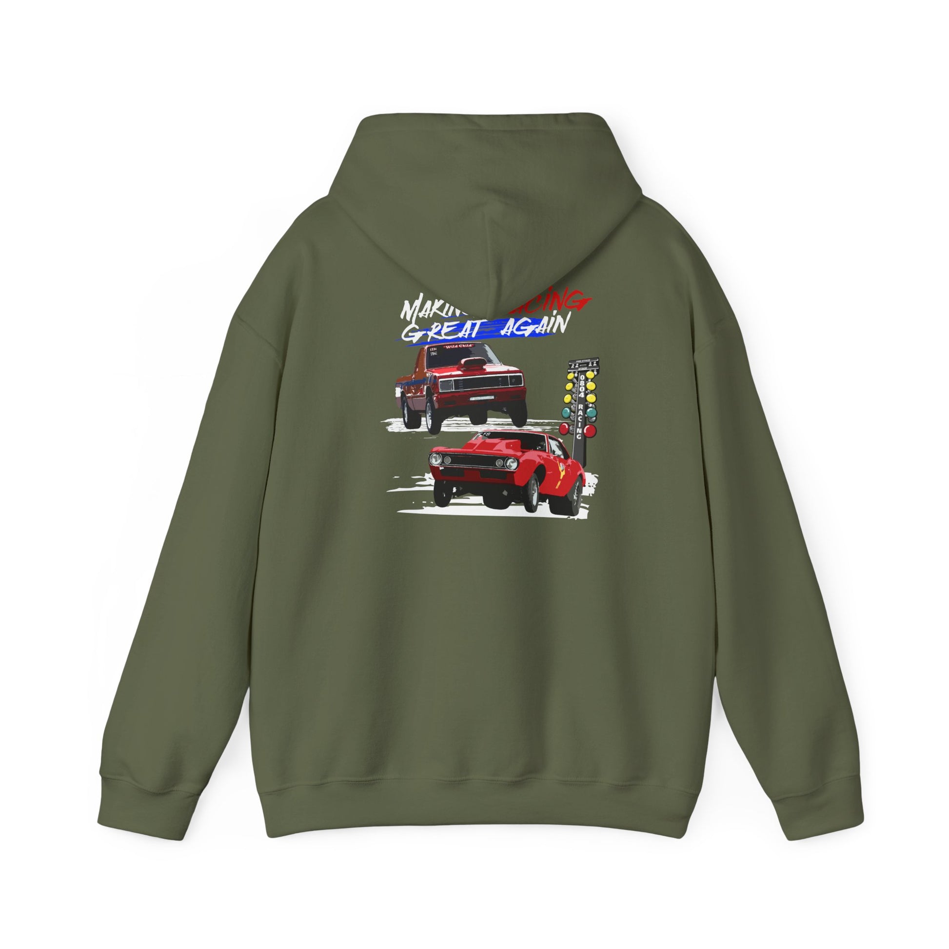 , comfortable fabric that’s perfect for long days at the track or casual weekends, this classic fit hoodie sports the iconic Skeleton Raceway logo on the front with a vintage racing vibe. Featuring bold, timeless graphics, this shirt celebrates our dedication to making racing great again.
